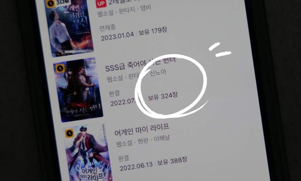 보유 179장, 324장 이렇게 되어 있죠. 한 장당 100원이니 17,900원, 32,400원이네요. 카카오페이지 소장권 이용권 환불 하고 싶은 작품을 선택합니다.