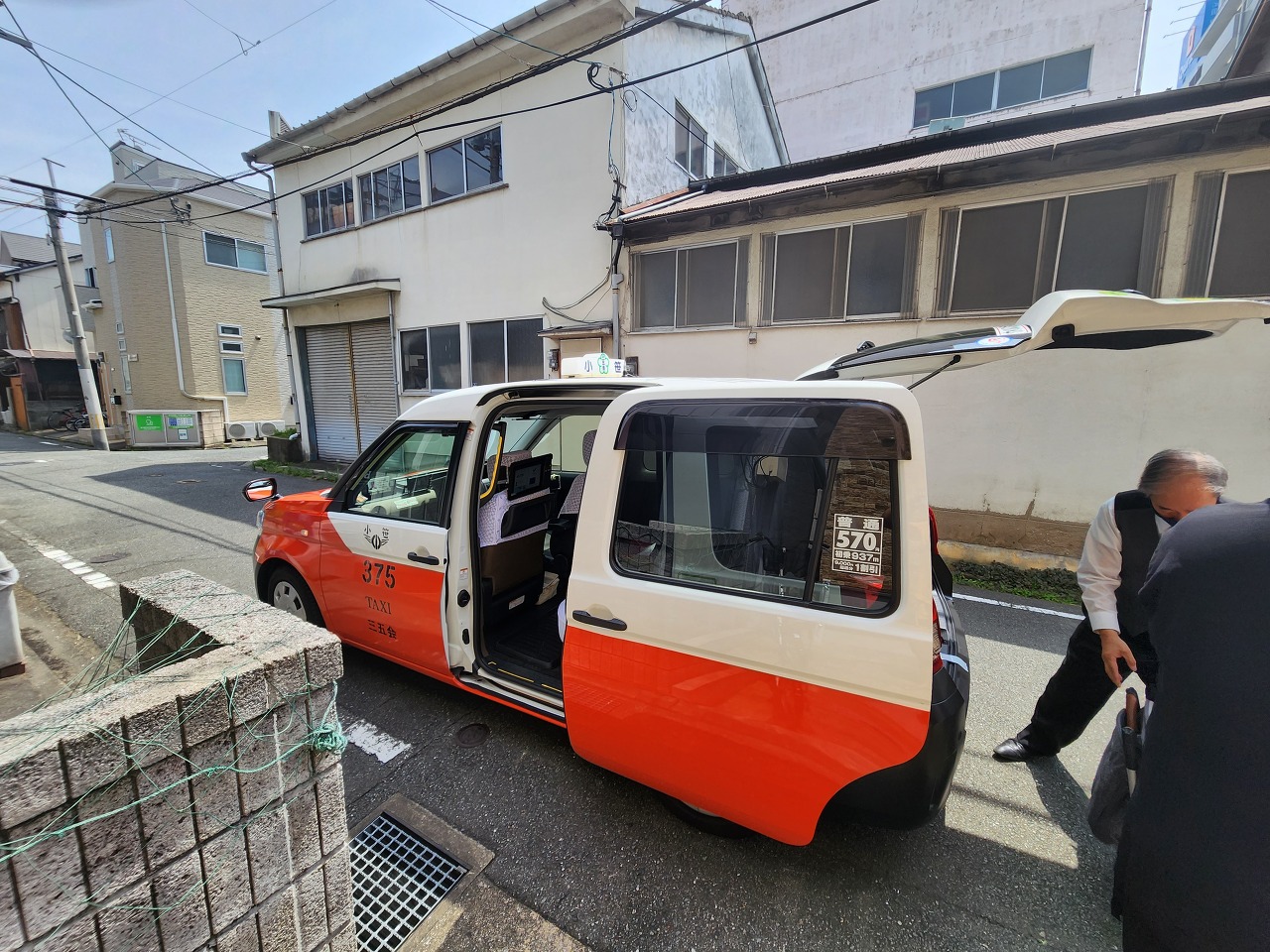 택시가 도착했고 왼쪽 조수석앞에 택시기사님 면허증이 보입니다. 택시기사님이 도착하면 핸드폰으로 앱을 보여줘서 본인이 택시를 부른것을 확인시켜줘야 합니다.! 일본은 이런부분은 철저하더라구요