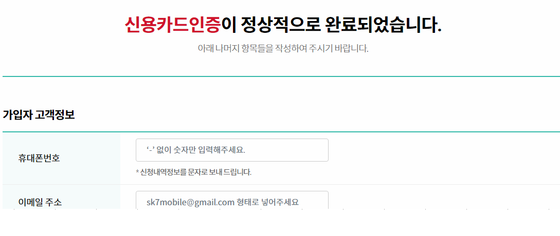 인증을 마치고 나머지 사항들을 기입하시면 됩니다.